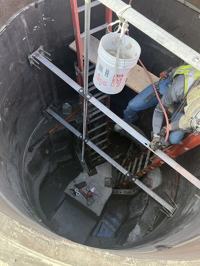 ​The big hole at the Headworks at the TSSD main facility continues to get more crowded with additional infrastructure pieces being added daily. These manholes also act as flumes and will be equipped with headgates to be able to channel and control sewer flow as it enters into the Headworks operations.